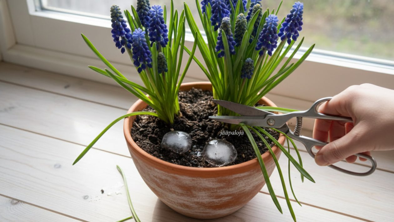 Oletko sinäkin tuskastunut olohuoneessa pitkiksi venyviin ja kaatuileviin sipulikukkiin, tai oletko vahingossa hukuttanut ne lämpimällä vedellä? Oletko koskaan uskaltanut tarttua saksiin ja leikata helmililjan lehtiä lyhyemmiksi? Hae jääpalat pakastimesta, siirrä ruukut rohkeasti ulos yöksi ja testaa ammattilaisten niksiä! Jaa tämä täysin ilmainen, kukkaloiston moninkertaistava ja lompakkoa säästävä puutarhurin vinkki WhatsAppissa tai Facebookin viherryhmissä myös niille ystävillesi, joiden pöytiä koristavat kevään siniset suosikit!