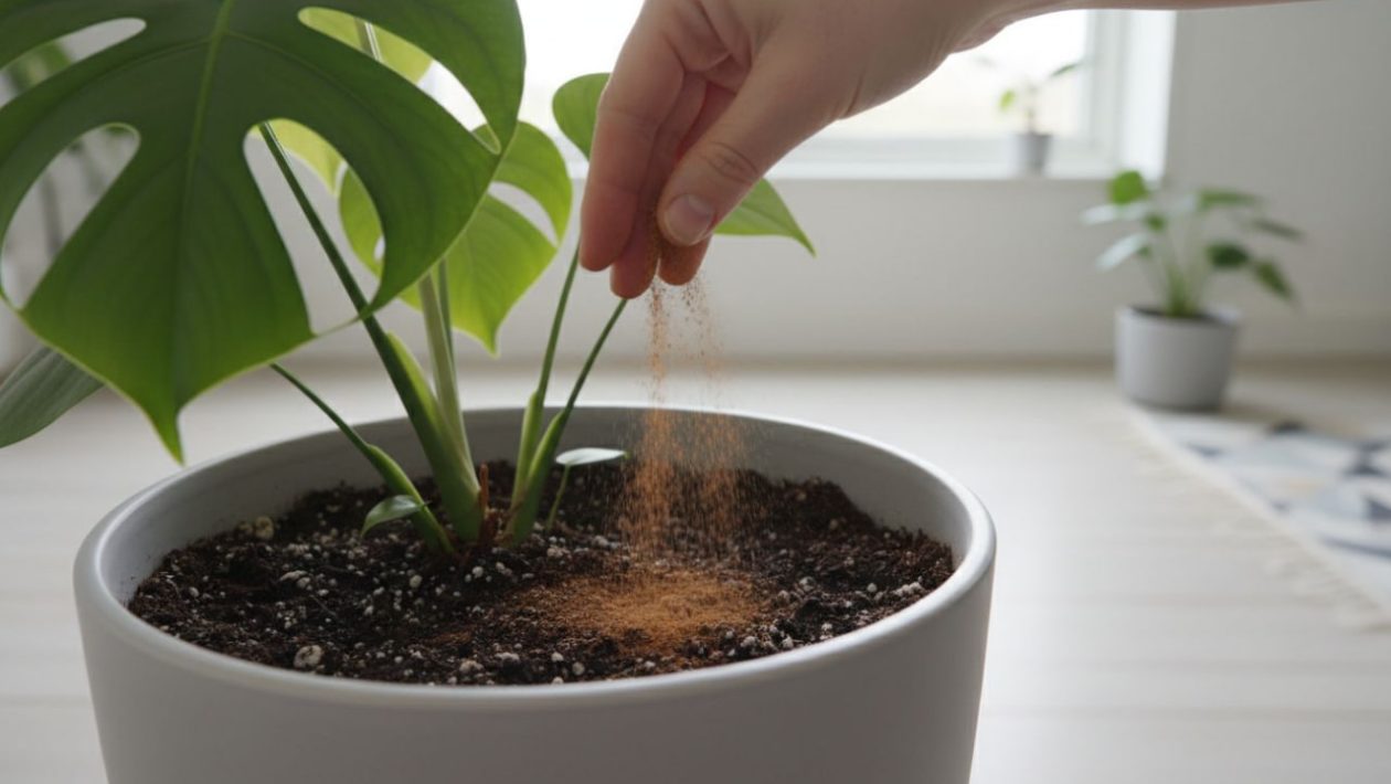Tässä vaiheessa kemia astuu kuvaan. Hae keittiön kaapista tavallista Meiran tai muun merkin kanelia ja ripottele sitä tasainen, ohut kerros uuden mullan pinnalle.
