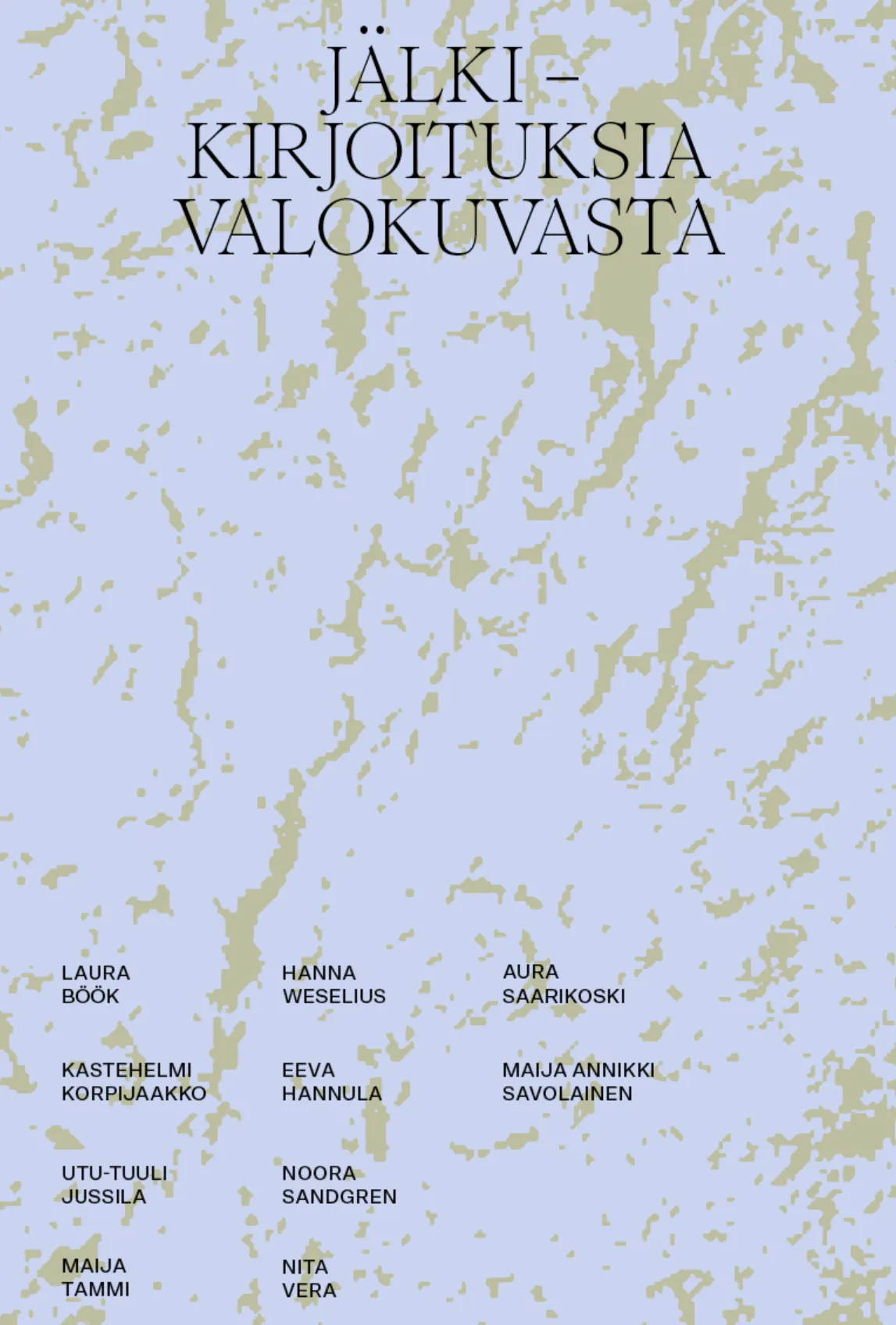 Jälki – Kirjoituksia valokuvasta on valokuvataiteilijoiden kirjoittama esseekirja omasta välineestään. Kirjoitimme kirjaa seminaarimuotoisesti yhdessä ja kommentoimme toistemme tekstejä pitkin matkaa. Prosessi oli palkitseva – yksi ryhmämme jäsenistä sanoi, että tapaamiset olivat kuin olisi käynyt hieronnassa.