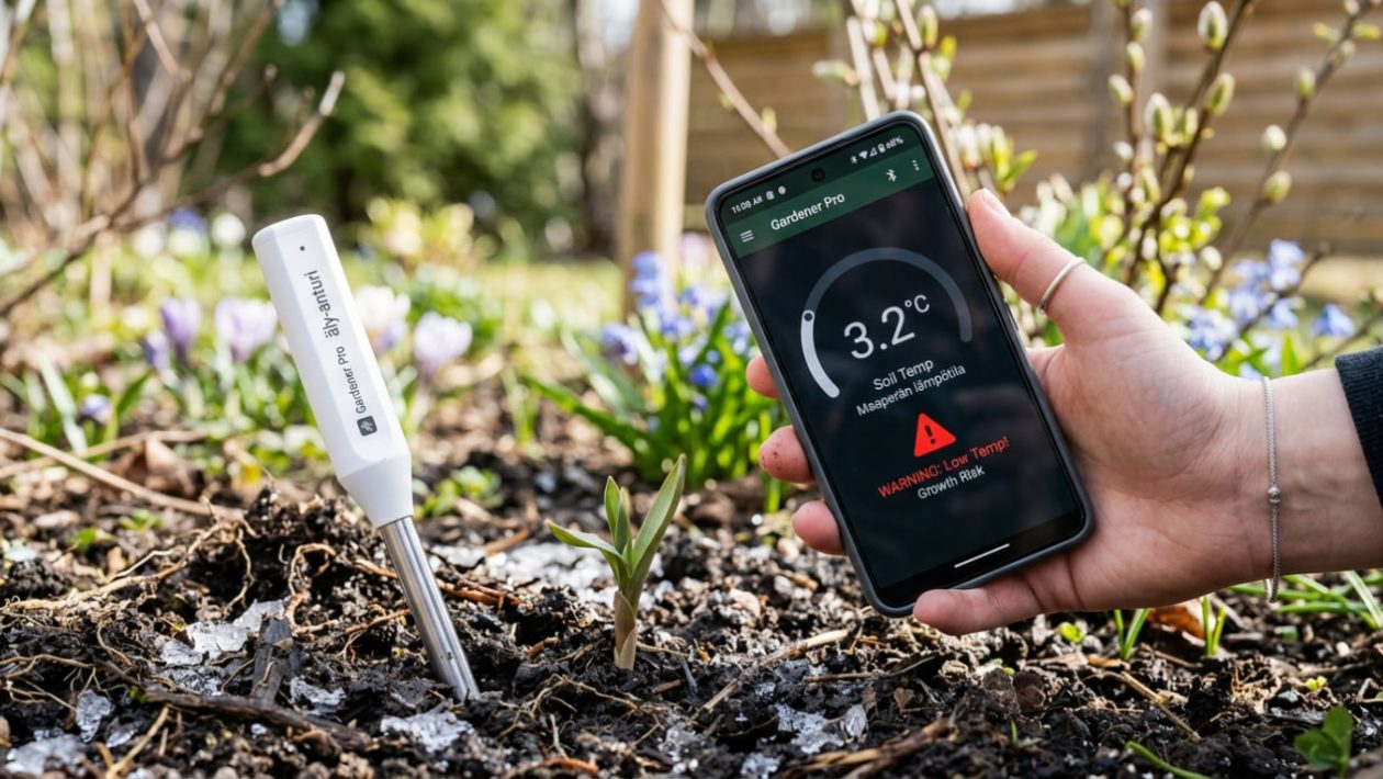 3. Kriittinen ”7 asteen sääntö”: Useimmat kasvit, sipulit ja siemenet vaativat itääkseen ja juurtuakseen vähintään +7 – +10 asteen tasaisen maalämpötilan. Älymittari hälyttää (lähettää ilmoituksen), kun maaperä on aidosti saavuttanut tämän turvallisen heräämispisteen.