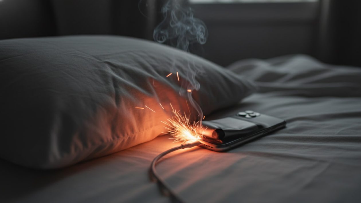 Puhelimen tai tabletin akun lataaminen tuottaa aina lämpöä. Jos laite on kytkettynä verkkovirtaan ja se lepää pehmeällä, eristävällä alustalla – kuten sohvalla, peiton alla tai tyynyn vieressä – lämpö ei pääse haihtumaan laitteesta. Kun 200 asteen saavuttanut laite makaa rutikuivan puuvillalakanan päällä, makuuhuone on ilmiliekeissä minuuteissa. Tuli ja myrkyllinen savu leviävät tyhjässä, pimeässä huoneessa huomaamatta.