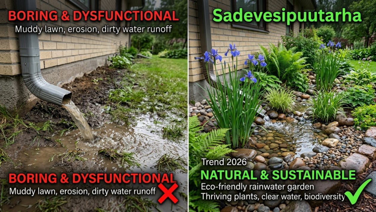 Maisemasuunnittelijoiden ja ympäristöekologien viesti on keväällä 2026 kuitenkin yksiselitteinen: lopettakaa puhtaan sadeveden viemäröinti! Sosiaalisen median piha- ja puutarharyhmissä jyllää nyt ennennäkemätön ilmiö, joka kääntää ongelman valtavaksi voimavaraksi.