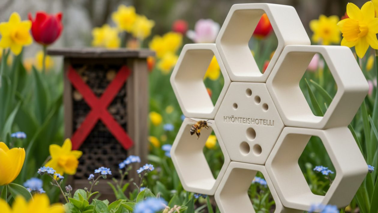 Pihasuunnittelijoiden (esim. Kekkilän tai suomalaisten muotoilutoimistojen) uudet suosikit ovat 3D-tulostetut, modulaariset hyönteishotellit. Ne eivät näytä enää linnunpöntöiltä, vaan ne muistuttavat abstraktia taidetta, moderneja mehiläiskennoja tai sileitä, futuristisia veistoksia.