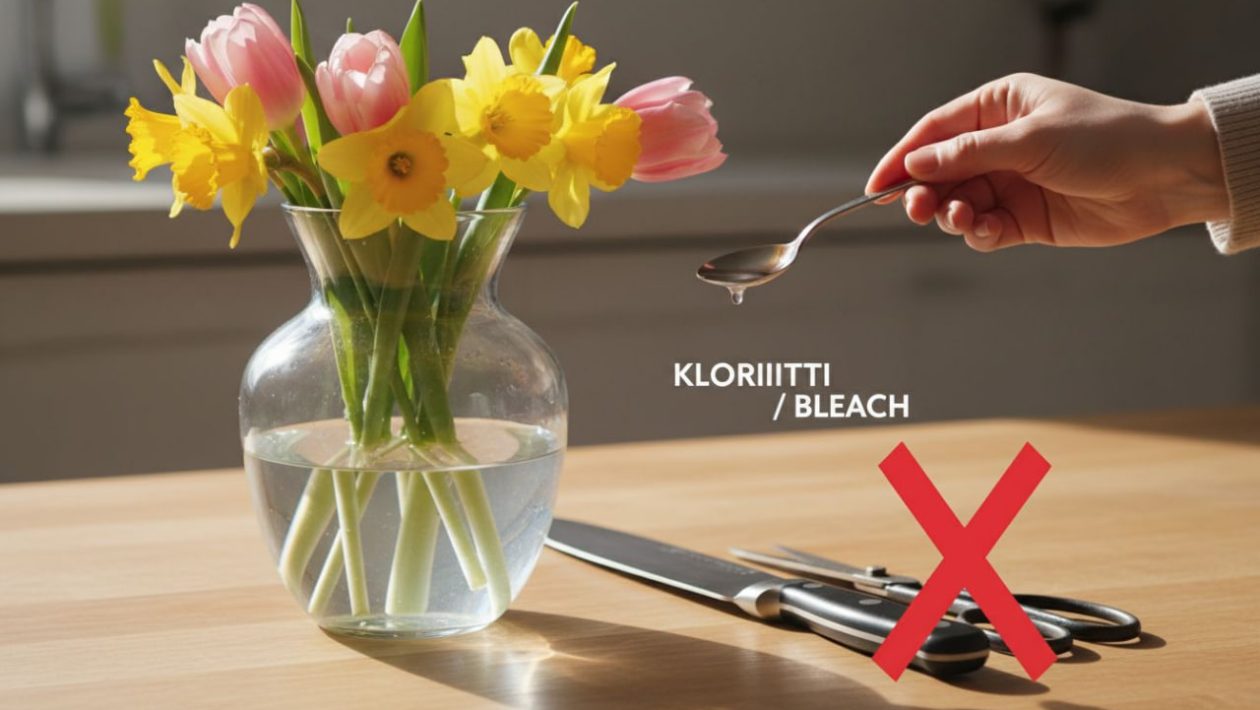 Huhtikuun saapuessa suomalaiset kantavat koteihinsa miljoonia tulppaaneja ja narsisseja tuomaan kevään valoa olohuoneisiin. Ilo marketista ostetusta, kymmenen euron kimpusta muuttuu kuitenkin aivan liian usein pettymykseksi: jo parin päivän kuluttua vesi samenee, varret venähtävät holtittomasti ja raskaat kukat nuokkuvat velttoina maljakon reunan yli.