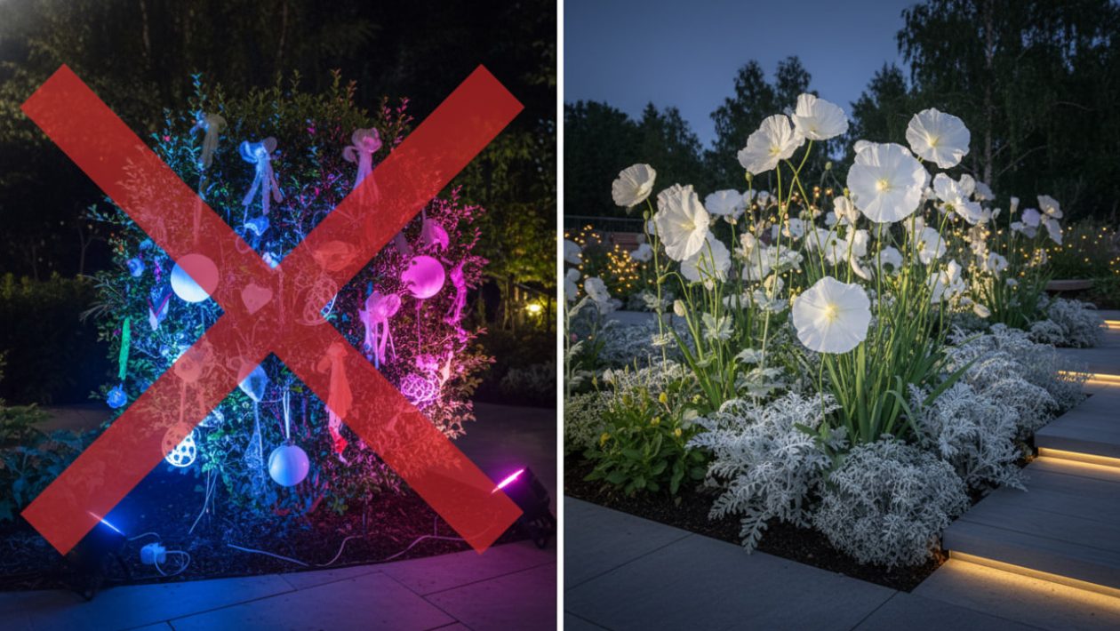 Pihasi näyttää ”halvalta Las Vegasilta” yöllä? Maisemasuunnittelijat tyrmäävät suomalaisten värivalot – Istuta tämä 3 kasvin ”Kuutamopuutarha”, joka hehkuu pimeässä taianomaisesti