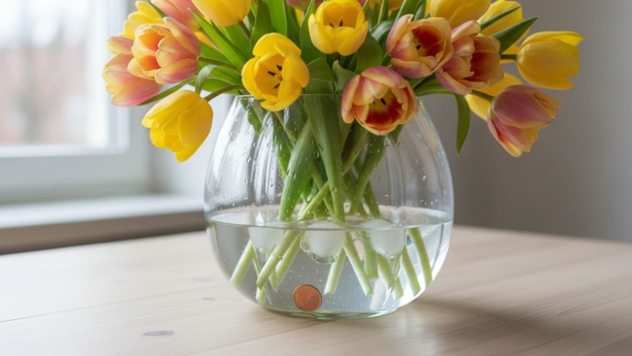 Oletko sinäkin tuskastunut parissa päivässä roikkuviin ja ylipitkiksi kasvaviin tulppaaneihin, tai oletko pilannut kalliit kukat lämpimällä vedellä? Oletko koskaan kokeillut kuparikolikon puhdistavaa voimaa, tai oletko leikannut varret väärin viistoon? Hae lompakosta muutama sentti, leikkaa varret suoraan ja testaa ammattilaisten jääpalashokkia jo tänä viikonloppuna! Jaa tämä täysin ilmainen, kukkabudjettia säästävä ja kodin keväisen kukkaloiston moninkertaistava kemianniksi WhatsAppissa tai Facebookin kukkaryhmissä myös ystävillesi!