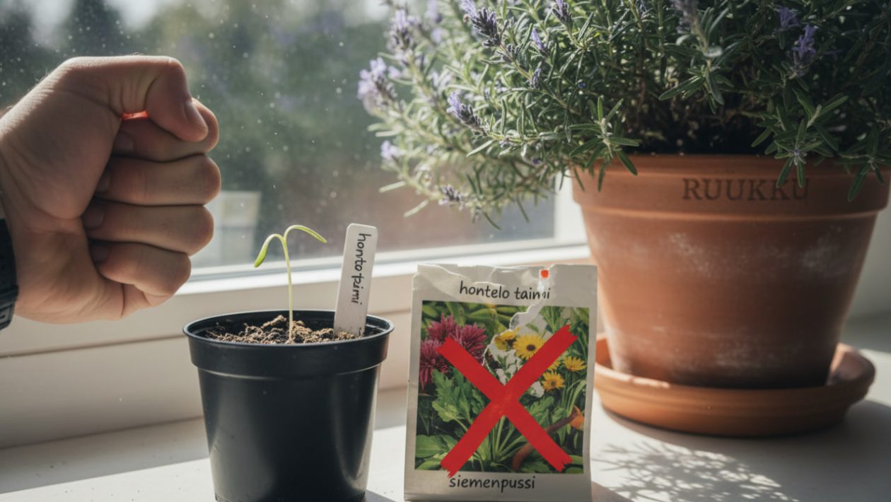 Puutarhaliiton asiantuntijat muistuttavat fysiologian ja ilmaston kovasta laista: Suomen valoisa kasvukausi on yksinkertaisesti liian lyhyt monille eteläisemmille lajeille. Jos kylvät hitaasti itävän siemenen maaliskuussa olohuoneen (esim. 22 asteen) lämpöön, ja joudut odottamaan yöpakkasten ohittumista kesäkuun alkuun ennen ulos siirtoa, kasvi ehtii viettää elämänsä parhaat kuukaudet kituuttaen ahtaassa purkissa.