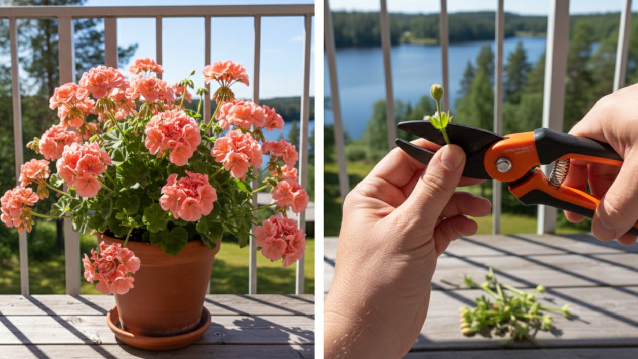 Miten saat pelargonin muuttumaan tuuheaksi, pallomaiseksi pensaaksi, joka tekee kymmeniä kukkavarsia? Vastaus on raaka ja armoton: tartu Fiskarsin tai Felcon oksasaksiin ja leikkaa!