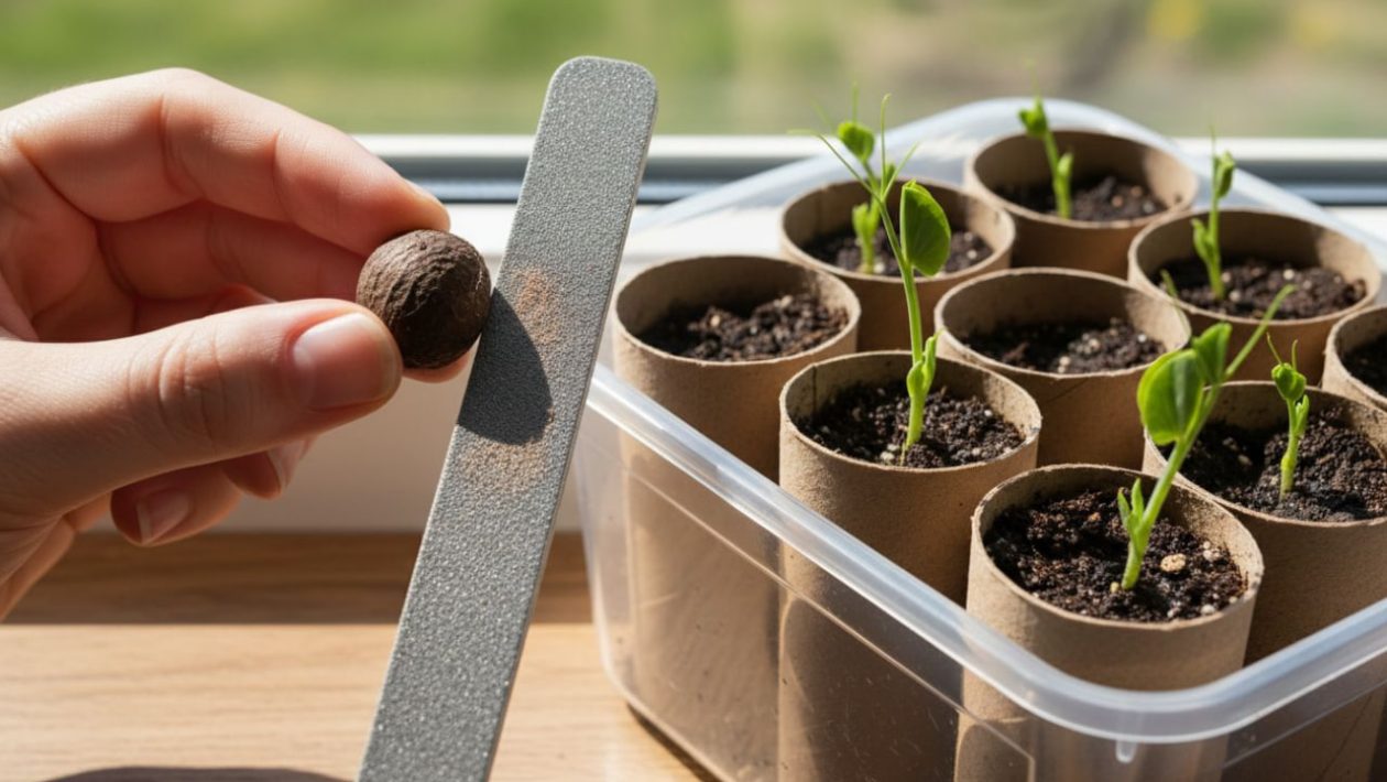 Tämä kuulostaa absurdilta kasvihoidolta, mutta se perustuu puhtaaseen kasvitieteeseen (mekaaninen stratifikaatio eli kuoren rikkominen).